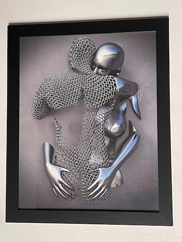 SILVER METAL COUPLE EMBRACE - S-SMCE-5848*