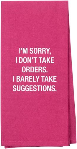 ROSE PINK COLOR: White print reads " I'M SORRY, I DON'T TAKE ORDERS. I BARELY TAKE SUGGESTIONS."