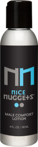 PRODUCT INFO: A light comfort lotion for men, Nice Nuggets is specifically designed to soothe, freshen and protect the testicles from chafing, sweating and sticking. This aloe and vitamin E enriched lotion-to-powder formula keeps things dry and comfortable with no powdery residue; use daily after a shower or just to freshen up. 4 fl. oz. bottle.
