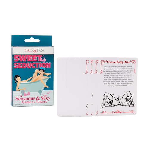 Test your love and romance knowledge by playing the Sweet Seduction Game. The fun adult couple’s game is designed for serious lovers who want to learn all there is to know about intimacy and pleasure. The themed card game is made for 2 players and is perfect for new lovers and established couples. Chance your luck by answering and asking questions that reveal your secret passionate desires and erotic fantasies.