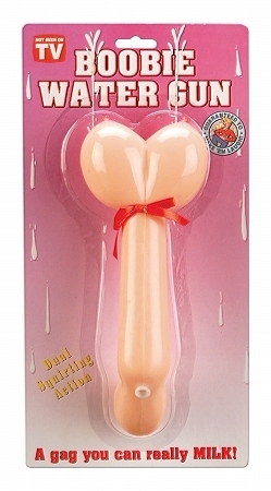 Have fun the adult way with these pair of water squirting boobies. This water gun brings adult fun for all! Fill up your gun, aim and squirt!