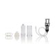 ABS (pump handle) PVC (hose) Silicone (donut and Commander™) Nylon (travel bag) SAN (cylinder) 9.5”x 2.5”/ 24 cm x 6 cm (cylinder assembled) 6”x 2.5”/ 15 cm x 6 cm (nested cylinder)