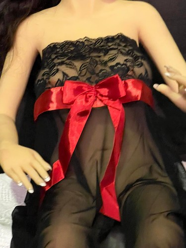 πŸ‘™ WOMEN’S LINGERIE β€” Lace, Leather & Little Left to the Imagination: 9B - MEGA BARGAIN - BLACK NEGLIGEE  STRAPLESS WITH RED BOW - 7185**