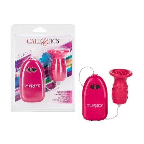 Enjoy intensely memorable orgasmic experiences with the Pleasure Kiss Arouser. The discreet and compact hand-held stimulator is designed for maximum feminine pleasure and is perfect for first-time and experienced users. Boasting 7 powerful vibration, pulsation and escalation functions, this exotic stimulator is ideal for intimate solo play and unlimited pleasure. The arouser is shaped to stimulate and tantalize your most intimate pleasure zones. The unscented, hygienically superior silicone teaser is curved and contoured for unlimited erotic play. The soft and ultra supple removable sleeve is embellished with heart shaped pleasure nubs and boasts flexible ticklers for intense satisfaction. Measuring 2.75” x 2”/7 cm x 5 cm, the arouser is great for portable intimate fun wherever you go. Simply power up with 3 AA batteries, and select your preferred function, and get ready for a mind-blowing time. The easy to use, powerful massager is controlled via a durable hand-held controller, with EZ push button controls. To enhance intimate self-gratification, always use a quality lube with this toy. Before and after every use, clean the removable silicone sleeve with a toy cleaner spray, or warm soapy water.